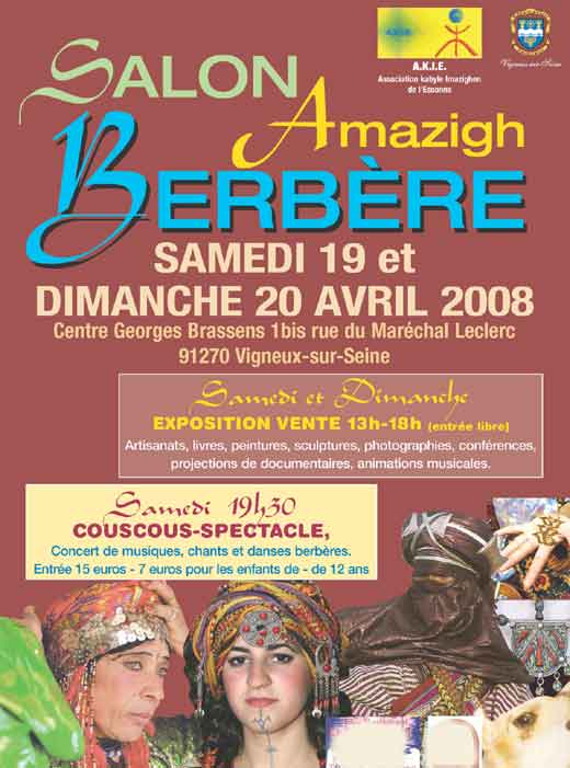L’Association Kabyle Imazighen de l’Essonne, organise un "Salon amazighbère 2008" à Vigenuex-sur-Seine.