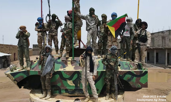 Le 2 octobre 2023, une lourde colonne malienne de 100 chars et véhicules blindés part de Gao en direction de Kidal. Elle atteint Anefif à 100 km de Kidal. Le village est déserté par ses habitants qui connaissent les pratiques d’exécution sommaire des militaires maliens appuyés par les miliciens russes. Encerclés par les combattants touaregs et faute de pouvoir s’approcher de Kidal, l’armée malienne et ses alliés russes usent de drones tueurs. Le mardi 7 novembre 2023, ils bombardent Kidal à trois reprises. La base de la Minusma que les Casques bleus viennent de quitter et deux autres cibles civiles dont une école sont atteintes. On dénombre plusieurs morts, selon les chiffres de la Coordination des Mouvements de l’Azawad [6] huit enfants et six hommes, ainsi que de nombreux blessés. Les combats qui s’engagent avec les groupes touaregs de l’Azawad quand la colonne Fama-Wagner tente d’atteindre Kidal sont violents. La presse malienne parle de "percée" tandis que du côté touareg on relève des mouvements de débandade parmi les militaires maliens et leurs mercenaires russes. Ces derniers bombardent aveuglément Kidal que les habitants pris au piège tentent de fuir. Le 14 novembre, l’armée malienne et ses supplétifs russes entrent dans Kidal.