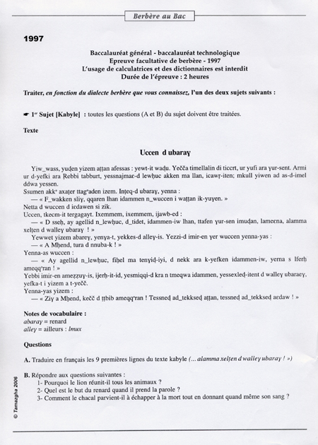 1. > Sujet-1997-kabyle, 20 mars 2006, 15:50