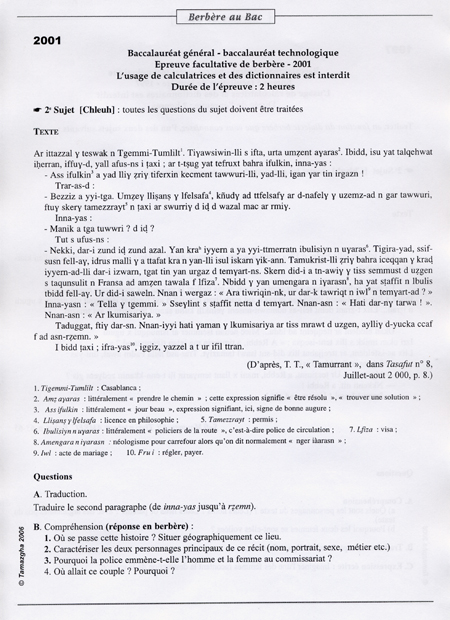 Accueil > Dossiers et documents > Berbère au Bac > Chleuh (Tacelh’it) > Sujet-2001-Chleuh