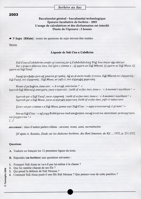 Accueil > Dossiers et documents > Berbère au Bac > Rifain (Tarifit) > Sujet-2003-Rifain