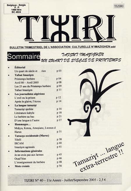 Le numéro 40 de la revue Tiziri éditée par l’association n’Imazighen à Bruxelles vient de paraître.