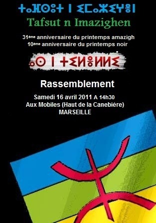 Sept associations basées en Occitanie (principalement à Marseille) appellent à un rassemblement unitaire à l’occasion du trente-et-unième anniversaire du Printemps berbère et du dixième anniversaire du Printemps noir.