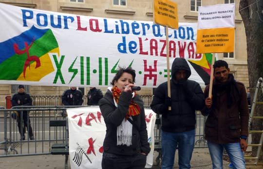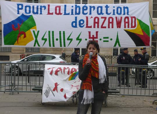 Depuis le déclenchement des hostilités entre le Mouvement national pour la libération de l’Azawad (MNLA) et l’armée malienne, en janvier 2012, Tamazgha s’est engagée aux côtés du MNLA et toutes celles et tous ceux qui se battent pour l’indépendance de l’Azawad. A Paris, elle ne cesse, depuis, d’exprimer la voix de l’Azawad. Rien ne semble pouvoir entamer sa détermination alors même que les médias français se refusent à évoquer ses actions et que les forces occultes anti-amazighes déploient des moyens collossaux pour désintéresser la communauté amazighe en France de ce qu’endurent leurs frères dans l’Azawad.