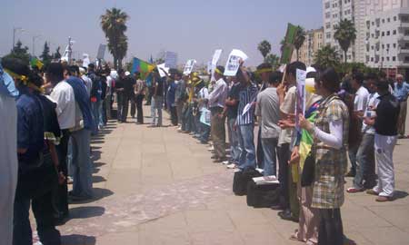 Une série d’actions ont été aussi organisées les 23, 24 et 25 juin par le MCA à l’université d’Oujda en solidarité avec les détenus et leurs familles. Au menu, des débats portant sur les circonstances de la détention des étudiants berbéristes dans plusieurs universités, des projections de documents vidéos sur les manifestations organisées dans plusieurs villes et universités et une conférence sur la détention politique. Les activités ont été clôturées, le 25 juin, par une manifestation dans les rues d’Oujda pour exiger la libération des détenus.