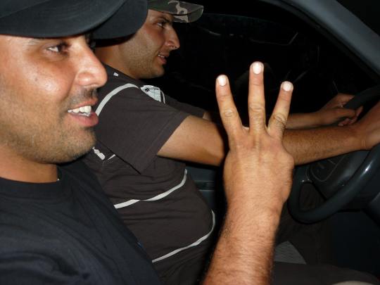 Vers 17h, Fethi et son fils Madghis ont mis au point les derniers détails de la mission de mon transport vers Ifrane (Libye) par Mohand et Abdellah venus de Tunis avec un véhicule chargé de marchandises. Pour que je puisse me rendre à Ifrane (Yefren), Mahmoud, le troisième voyageur, a dû renoncer à sa place. On a alors rajouté à la charge de la voiture mon sac à dos ainsi que 100 drapeaux amazighs.