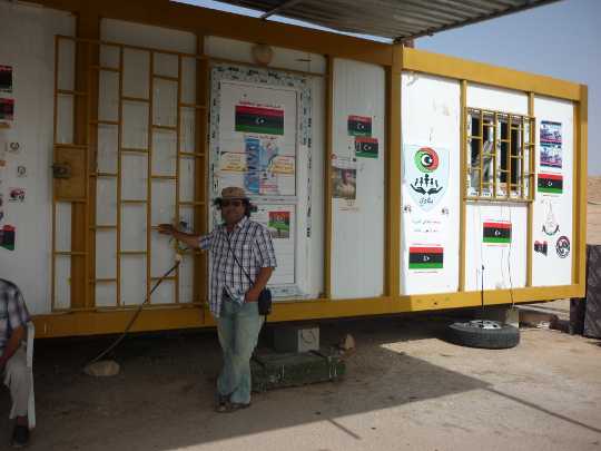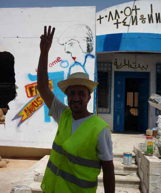 J’étais entrain de visiter l’ancienne prison [1] de la ville lorsque j’ai entendu de loin la musique du chanteur kabyle Idir populaire à Adrar n Infusen. Plus rien ne pouvait me surprendre dans ce pays réellement libéré... Mais je voulais comprendre d’où était diffusée la musique. De plus, dans un pays en guerre on ne peut pas imaginer que les populations puissent avoir le temps de diffuser de la musique. Pourtant tel était bien le cas à Ifrane. Madjer, mon guide pour la journée, m’a expliqué que la musique venait de Taddart n Tlelli (la Maison de la liberté). Je lui ai demandé, bien entendu, de m’y conduire. Taddart n Tlelli est l’un de ces bâtiments qu’occupait, il y a peu, l’administration de Kadhafi où était édifiée une grande effigie de son fameux "livre vert". Les jeunes d’Ifrane ont investi ce lieu dès le début du soulèvement de février 2011. Ils ont détruit le monument de propagande et réquisitionné le bâtiment aujourd’hui transformé en un lieu de rencontre de débat et de libre expression. D’ailleurs le nom du lieu l’indique bien. Dans Taddart n Tlelli on trouve une exposition des différentes armes que les troupes kadhafistes ont utilisées pour tirer sur les populations. Des peintures murales relatent les événements vécus par la ville. Une sonorisation mise en place dans les jardins du bâtiment diffuse la musique du chanteur kabyle Idir.