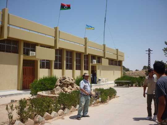 Madjer est artiste. Il s’occupe de l’Association des artistes amazighs. Il parle parfaitement tamazight. Dire qu’il y a seulement cinq ans qu’il a commencé à l’apprendre. Auparavant il habitait à Tripoli et ne parlait qu’en arabe. Comme tous les jeunes d’Ifran, Madjer a pris les armes (d agrawli : c’est ainsi qu’on appelle les combattants à Adrar n Infusen) au début du soulèvement. Et malgré ses diverses activités notamment au Media Center, il lui arrive d’aller au front (iteffegh) et son arme est soigneusement gardée. Dans les rues d’Ifran, on croise des compagnons de combat de Madjer, tous jeunes, qui étaient contents de rencontrer un Kabyle dans leur village. Très vite, ils m’ont accaparé, ils m’ont fait monter dans leur pick-up pour me faire visiter la ville et ils m’ont raconté avec beaucoup d’enthousiasme leurs exploits contre les troupes kadhafistes. Par la suite, ils m’ont conduit au Centre de commandement militaire d’Ifrane qu’ils m’ont fait visiter. C’est un Club sportif qui l’abrite, ce qui permet d’ailleurs l’utilisation de ses équipements pour la (re)mise en forme physique des combattants. Quelle agréable surprise et quel bonheur ce fut de voir le drapeau amazigh flotter dans ce Centre de commandement militaire. C’est un ex-officier de l’armée libyenne qui coordonne les opérations militaires dans la région depuis ce Centre. Les combattants me montrent des véhicules pris aux troupes kadhafistes lors d’accrochages. Il est difficile de voir un véhicule qui ne porte pas un insigne amazigh ; c’est dire à quel point l’amazighité est ancrée dans cette région et que leur détermination à vivre pleinement leur identité est acquise. Pour l’anecdote la quasi-totalité des combattants portent des t-shirts avec des symboles amazighs : certains avec le signe zad d’autres avec des drapeaux amazighs au dos, d’autres avec des tifinaghs, …