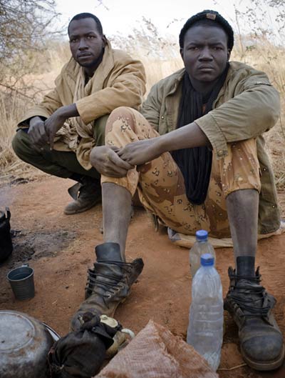 J’ai rencontré un soldat (déserteur de la gendarmerie malienne) âgé de dix-sept ans seulement, un autre soldat avait cinquante-et-un ans, mais on peut dire que la majorité ont entre 20 et 25 ans. Ce sont des jeunes assoiffés de liberté. S m’ont dit qu’ils sont là pour la liberation de l’Azawad. Ils m’ont dit combien ils sont marginalisés et leur pays est abandonné et sans infrastructures, livré à l’insecurité. Même au sein de l’armée malienne, il y a une grande méfiance à l’égard des Azawadiens dès le début de ce conflit. Pour les Azawadiens le gouvernement malien est incapable de gérer la région. Enfin il veulent prendre leur destin en main.