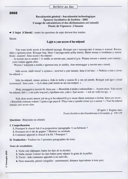 Accueil > Dossiers et documents > Berbère au Bac > Chleuh (Tacelh’it) > Sujet-2002-Chleuh