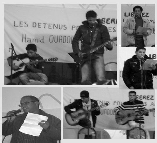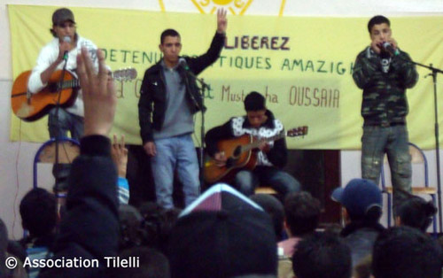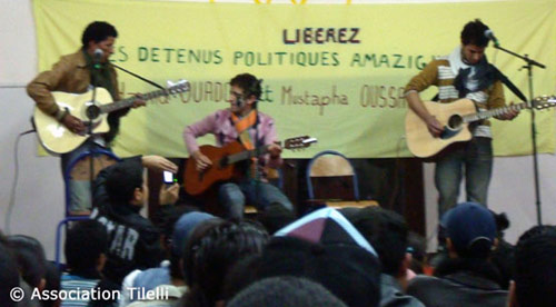 Le 1er décembre, Tilelli a organisé une soirée culturelle avec de la poésie, du théâtre et de la musique en hommage aux deux détenus politiques, Hamid Ouadoch et Mustapha Ousaïa, qui croupissent dans les prisons marocaines.