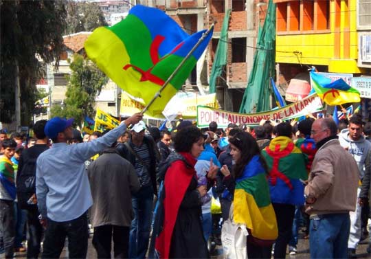 Si en Libye ou à Tamazgha occidentale, ou encore en Europe ou en Amérique, il suffit de peu pour que le drapeau amazigh apparait (le cas de la Libye reste exceptionnel), en Kabylie, pourtant berceau du combat amazigh, il faut toujours attendre que le Mouvement pour l’autonomie de la Kabylie (MAK) appelle à une manifestation publique pour voir ce drapeau dans la rue. C’était le cas ce 20 avril 2012 à Tizi-Ouzou où la ville a revêtu les couleurs amazighes.