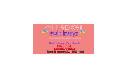 Cette page est dédiée à l’émission "Awaal n Imazighen", une émission radiophonique de Tamazgha sur les ondes "Fréquence Paris plurielle" (106.3 FM) qui émet en région parisienne. La radio est présente sur Internet à l’adresse suivante : http://rfpp.net