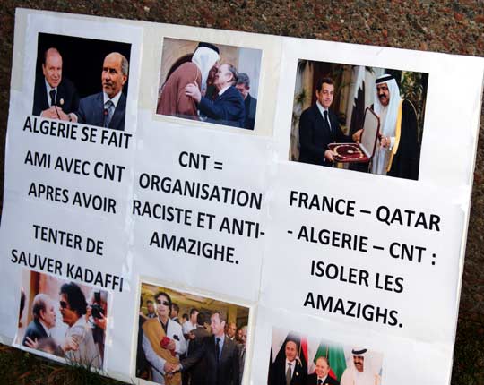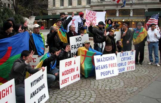Ainsi tandis que l’Arabie saoudite et les pétromonarchies financent les partis salafistes en Tunisie, en Égypte et dans tout le Moyen-Orient et que la Ligue arabe, cautionne sans protestation du Conseil de Sécurité et de l’Assemblée générale de l’ONU, le massacre du peuple syrien, la contre-révolution s’organise pour interdire aux peuples amazighs et aux Touaregs de se regrouper dans un État fédéral berbère : Tamazgha. Mission qui semble impossible car depuis les rassemblements de soutien aux Imazighens de Libye et aux Touaregs, tenus ce 17 décembre dans une cinquantaine de villes dont Paris, New-York, Montréal, Ottawa et Berlin, la question amazighe, inscrite dans la vie politique internationale, ne peut plus être ignorée en France. Pendant la campagne électorale de 2012 (présidentielle et législatives), les Amazighs doivent s’impliquer avec tous les démocrates pour la défense des libertés menacées par l’islamo-fascisme et ses alliés gauchistes, dans la continuité des combats menés par l’Étoile Nord-Africaine dans les rangs de la classe ouvrière contre le fascisme et le nazisme. Combattre pour la défense des libertés et de la démocratie en France, c’est apporter le meilleur soutien possible aux Imazighens de Libye et aux Touaregs.