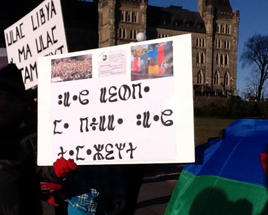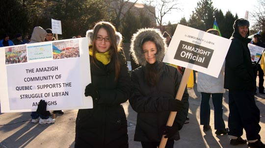 A Paris, Rennes, New-York, Boston, Ottawa et Montréal, des Imazighen et leurs amis sont sortis pour exprimer leur solidarité avec Imazighen de Libye en lutte. Des centaines de personnes ont bravé le froid et parfois la pluie (comme à Paris) pour répondre à l’appel des différentes associations et organisations qui ont tenu à dire aux Imazighen de Libye qu’ils sont à leurs côtés dans le combat qu’ils mènent pour Tamazight.