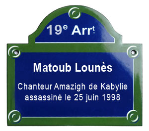 Naturellement, tout le monde s’attendait à ce que Lounès Matoub soit présenté comme chanteur amazigh (berbère), ce qui aurait été conforme à la promesse du Maire de Paris en janvier 2007. Mais à la veille de cette consécration, on apprend avec stupéfaction que sur la plaque qui sera apposée dans la rue sera écrit ceci : "Lounès Matoub (1956-1998) poète chanteur algérien d’expression berbère assassiné en Kabylie le 25 juin 1998".